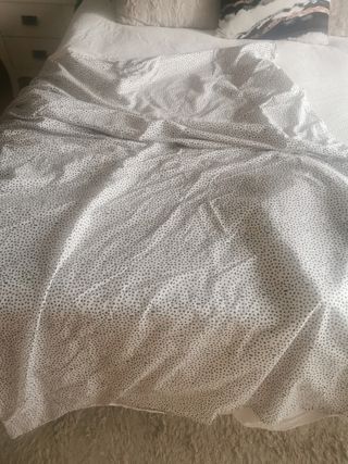 Funda nordica junto con funda de almohada para cama individual de 80-90cm. Es reversible, en uno de los lados tiene unas manchas (ver fotos).