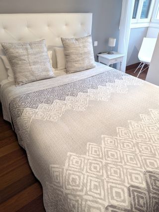 Colcha bouti para cama 135-150 Marca: Fun&Deco Tamaño: 250 x 270 cm Colcha bouti de estilo nórdico, elegante y en perfecto estado. Lleva 2 fundas de cojín a juego, de 60 x 60 cm e incluyo los rellenos de microfibra (cada relleno cuesta sobre 6 €)