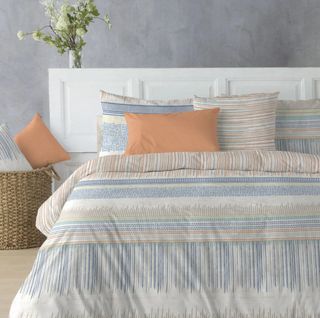 Juego de funda nórdica collecion Stilia home TAOSHI MELOCOTÓN 3 piezas para cama de 135. Funda nórdica (220x220+40cm) + Bajera (135x200+27 cm) + Funda Almohada (45x155 cm). Tiene un tacto agradable y exquisito, ya que está compuesta por un tejido 50% algodón y 50% poliéster, con lo cual hace que practicamente no se arrugue ni en su lavado ni en su posterior uso. Envíos disponibles