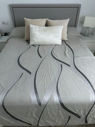 Conjunto nórdico de 4 estaciones de mateimonio con funda y cojines. cama 135 cm menos de un año de uso - Diseño moderno con estampado geométrico. - Incluye funda para el nórdico y cojines a juego, guardanordico.
