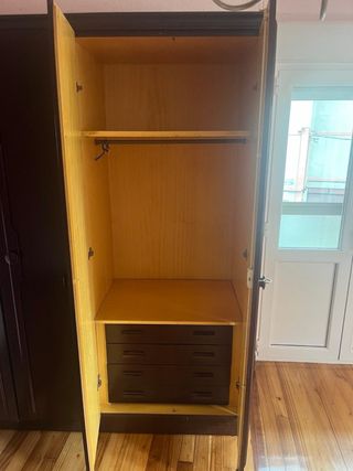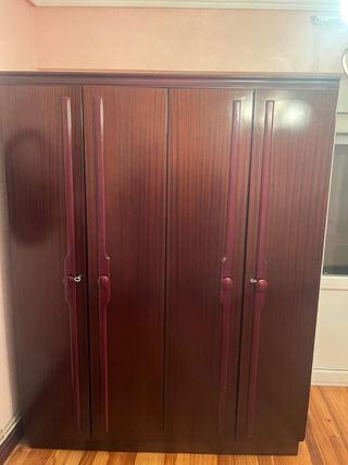 Armario de madera con un diseño tradicional. - Cuatro puertas. - Tiradores en color burdeos. - Acabado en madera veteada. Urge x mudanza