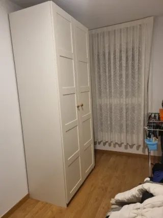 Armario de madera con un diseño moderno y elegante. - Puertas con paneles. - Tiradores redondos de madera. Actualmente esta montado.