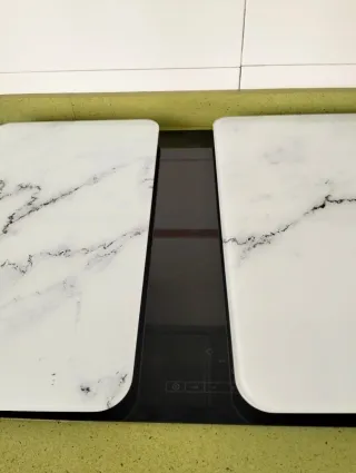 Dale un toque elegante a tu cocina con estas placas decorativas. - Diseño imitación mármol. - Acabado liso y brillante.
