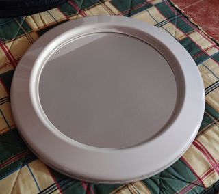 Precioso espejo de lavabo redondo. Ideal para darle un toque elegante a tu cuarto de baño. - Diámetro de 58cm. - Marco de plástico de color beige. - Espejo de cristal.