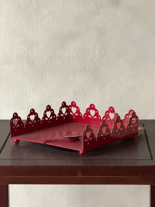 Servilletero de metal rojo con diseño