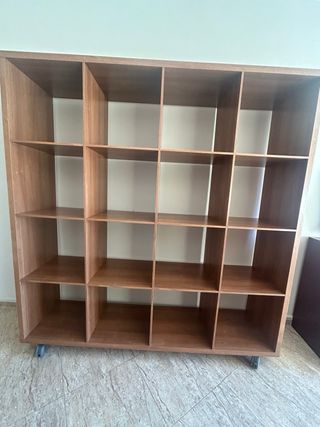 Estantería modular de gran tamaño, perfecta para organizar tus libros y objetos. - Medidas: 180 cm de alto x 180 cm de ancho. - Diseño de 16 cubos. - Base con ruedas para fácil movilidad.