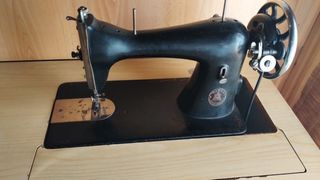 Se vende máquina de coser antigua, ideal para coleccionistas o amantes de la costura clásica. Incluye su mueble original. - Diseño clásico en color negro. - Mueble de madera. - Pieza decorativa o funcional.