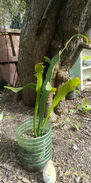 Planta natural con hojas verdes y alargadas. Aspidistra oreja de burro Aspidistra elatior, conocida como "planta del hierro", es una planta de interior muy resistente, ideal para poca luz y de bajo mantenimiento, famosa por sus hojas lanceoladas de color verde oscuro que aportan elegancia y frescura a cualquier espacio. Es segura para mascotas, purifica el aire y tolera la sequía y la contaminación, siendo perfecta para principiantes o lugares difíciles. - Cultivada en maceta reciclada. - Ideal para interiores o exteriores.