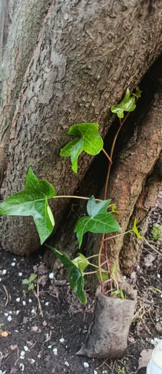 Planta de hiedra natural en maceta biodegradable para plantar directamente está completamente enraizada - Hojas verdes brillantes. - Tallo rojizo.