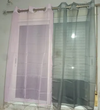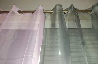Juego de dos cortinas de gasa, una en tono rosa y otra en gris. Son ligeras y aportan un toque de color a la estancia. Están sin estrenar las he colgado para la foto - Material: gasa y tela. - Diseño moderno. 5 euros cada una