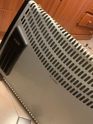 Radiador eléctrico de la marca Equation, ( Leroy Merlín) ideal para calentar estancias. - Termostato digital. - Apagado programable. - Diseño vertical con aletas. - Panel de control digital. - Ruedas para facilitar su movilidad. - Soporte para enrollar el cable.