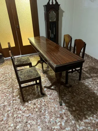Mesa libro antigua + 4 sillas madera a juego