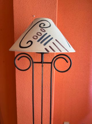 Lámpara de pie artesanal. Pieza única. -1,70 m - Estructura de forja. - Pantalla de tela pintada a mano Solo recogida.