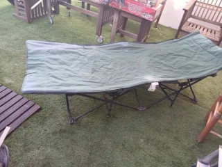 Cama de camping plegable, ideal para llevar de viaje o usar en exteriores. Se guarda fácilmente en su bolsa. - Estructura metálica. - Tejido resistente.