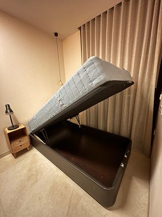 Cama de madera con colchón