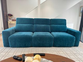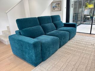 Sofá de tres plazas del diseñador Pedro Ortiz en un llamativo color verde aguamarina. El sofá esta absolutamente NUEVO, comprado hace 3 meses, apenas sin uso, lo vendo porque se queda un poco grande para mi Salón, Medidas 2,80 mt (largo) x 1,07 mt (Fondo). Precio Nuevo: 1.850 €, lo vengo en 1.000 €. Insisto, esta nuevo, mejor verlo y te lo quedas seguro.
