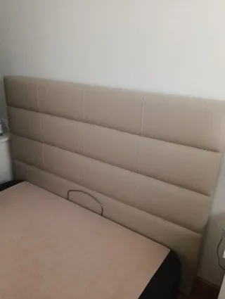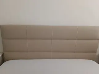 Cabecero de diseño moderno para cama de matrimonio. - Apto para camas de 150 cm. - Acabado acolchado con costuras. Medidas 160 por 118 de alto. Muy nuevo
