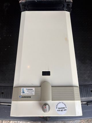 Calentador de agua de la marca Junkers. *IMPORTANTE* -EL CALENTADOR FUNCIONA PERFECTAMENTE PERO SOLAMENTE PIERDE UNA GOTA DE AGUA CADA X SEGUNDOS,TIENE ARREGLO PERO SE DESCONOCE EL PRECIO DE LA PIEZA QUE PIERDE... SE PUEDE BUSCAR LA PIEZA EN UN CALENTADOR SIMILAR EN EL QUE VENDAN DESPIECE... - Modelo de color beige y blanco. - Incluye etiqueta de servicio técnico oficial Junkers. - Tiene un dial para ajustar la temperatura. *EN MUY BUEN ESTADO Y CON MUY POCO USO,SE TENÍA INSTALADO EN UNA SEGUNDA VIVIENDA DONDE SE UTILIZABA MUY POCO*