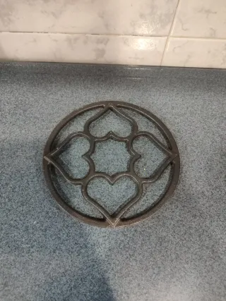 Soporte Cocina Gas Rejilla Placas - 19cm Universal Anillo Estufa de Hierro con 8 Ranuras de Fijación en la Base para Cafetera Moka Sartén Ollas Cafeteras Horno, 1 Pieza Soporte circular de hierro fundido para cocina de gas. Su diseño intrincado con motivos de corazón lo hace un accesorio decorativo y funcional. - Material: Hierro fundido. - Diseño: Circular con motivos de corazón. - Acabado: Negro mate. Nuevo a estrenar