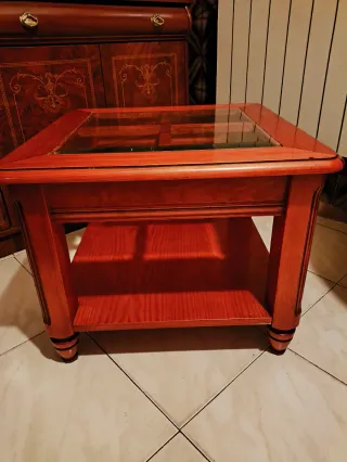 Elegante mesa de centro con un diseño moderno y funcional. Combina la calidez de la madera con la transparencia del cristal para crear un punto focal en tu salón. - Encimera de cristal. - Estructura de madera. - Diseño de dos niveles con balda inferior.