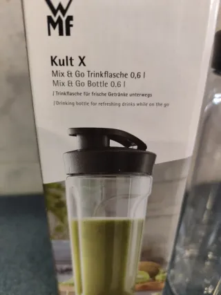 Botella para batidos de la marca WMF, modelo Kult X Mix & Go. - Material: Tritan. - Capacidad: 0,6 L.