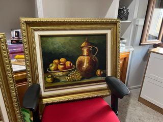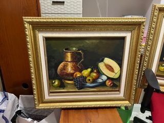 Conjunto de dos preciosos cuadros decorativos para el salón. - Marco con acabado dorado. - Motivo principal en tonos verdes.