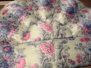 Cabecero de cama con un bonito estampado floral. - Diseño acolchado. - Tonos rosas y morados.