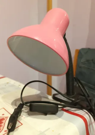 Lámpara de escritorio con pinza para sujetarla fácilmente. Su diseño moderno la hace ideal para cualquier espacio. - Acabado exterior en color rosa. - Interior de la pantalla en color gris. - Mecanismo flexible para dirigir la luz. - Pinza de sujeción robusta.