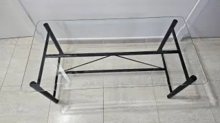 Elegante mesa de centro con sobre de cristal y estructura metálica. -Opcion de llevártelo a tu domicilio. - Diseño moderno. - Patas en forma de A. - Ideal para interior o exterior.