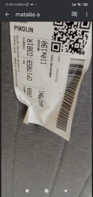 Colchón Pikolin de tela. - Diseño acolchado. - Textura suave al tacto.