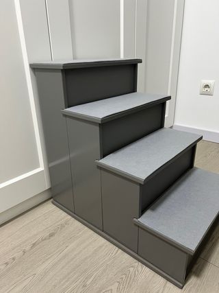 Escalera de cuatro peldaños para perros. Ideal para ayudar a tu mascota a subir a lugares altos. - Diseño moderno en color gris. - Estructura estable y segura de 8kg - Alfombrillas extraíbles y lavables. - Peso máximo soportado: 30 kg.