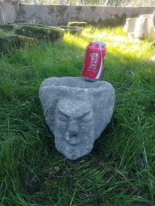 Preciosa Talla de Piedra de una Cara con Bigote con la boca abierta. Bonita pieza rústica de granito ideal para decorar el jardín sola o en una composición con otras piezas como unas macetas, una fuente, una cascada aprovechando el orificio de la boca. También se podría poner en el portal de la entrada de una casa, como figura decorativa en un balcón o una terraza... Posibilidad de envíos a toda España previa transferencia bancaria o Bizum. Consulte portes. También posibilidad de recoger en Guitiriz. Disponemos de amplio stock en elementos de piedra para decorar jardín, consúltenoslte si busca algo en concreto. Tlf 636 73 66 29.