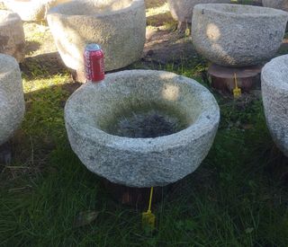 Bonita Pila de Granito de forma Circular, ideal para decoración de jardín como macetero con una composición floral, bebedero, estanque o como complemento para fuente, estanque o cascada. Un sinfín de posibilidades libres a la imaginación que hará que su jardín luzca espectacular. Dimensiones: 35,5cm de diámetro x 15cm de altura. Precio: 115€/ud (se dispone de 2 uds) Posibilidad de envíos a toda España previa transferencia bancaria o Bizum. Consulte portes. También posibilidad de recoger en Guitiriz. Disponemos de amplio stock en elementos de piedra para decorar su jardín, consúltenos si busca algo en concreto. Tlf 636 73 66 29.