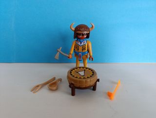 Figura de Playmobil de un chamán indio de una serie especial. Incluye accesorios. - Figura de chamán indio. - Incluye hacha, tambor, tenedor y cuchara. - Diseño detallado.