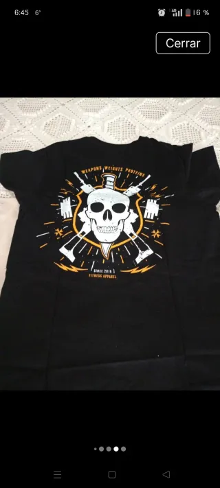 Camiseta negra con diseño gráfico de calavera, hachas y pesas. - Estampado Weapons Weights Proteins. - Detalle Since 2015 Fitness Apparel. - Cuello redondo y manga corta.