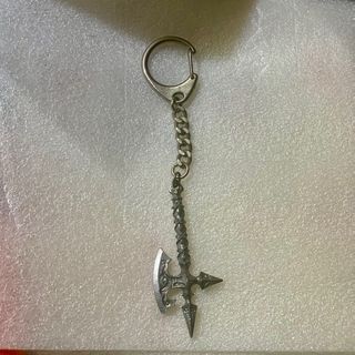 Este llavero presenta un diseño inspirado en un hacha vikinga de asalto de barcos, pieza unica - Réplica detallada de hacha antigua. - Adorno con piedra roja. - Cadena y anilla metálicas.