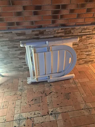 Hamaca reclinable comprada hace un año. las arrugas son de estar plegada - Estructura metálica. - Tejido resistente.