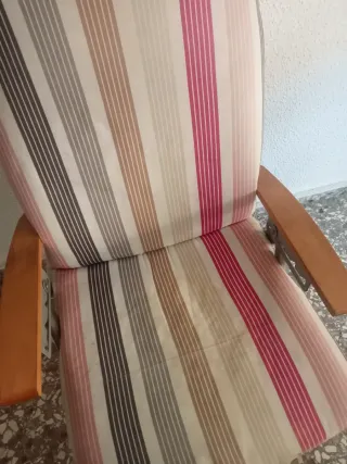 Hamaca plegable con un diseño alegre y vibrante. - Estructura metálica. - Reposabrazos de madera. - Tapicería de tela con rayas verticales. -Tiene una funda que son las primeras fotos y se puede quitar.