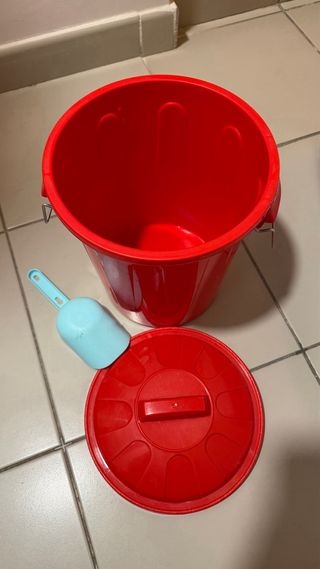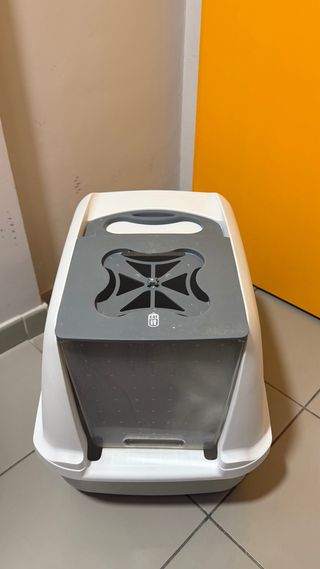 Lote de accesorios para gatos, que incluye: - rascador gris para subirse encima - rascador para la pata de la mesa (se pega con el velcro que tiene) - arenero catit XXL (54,5 x 41,5 x 46 cm aprox) - cubo para la comida con pala - hamaca + mantita suave para pegar en el cristal - tolvas para viaje (agua y pienso) - incluye algún juguete como bolitas - cortauñas - y dos cuencos ceramicos Todo por 65€