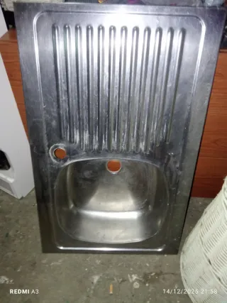 Fregadero de cocina de acero inoxidable con escurridor. - Material: Acero inoxidable. - Diseño con cubeta y zona de escurrido. - Agujero para grifo. Mide de largo 80 y de ancho 50