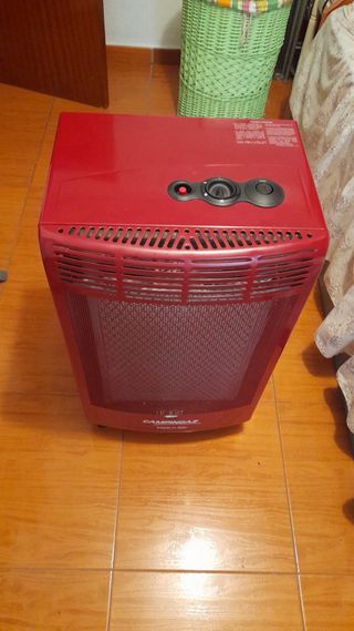 Estufa de gas Campingaz en color rojo. - Material metal con funda. - Diseño práctico para interiores. Funciona con bombona de gas ( no incluida) Precio negociable. No se hacen envios .