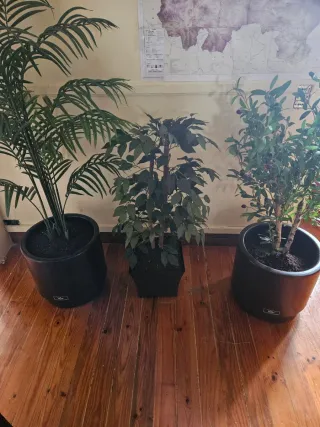 Se venden tres plantas decorativas juntas. No envio ,hay que recogerlas en mi casa,se pueden ver sin compromiso - Planta tipo palmera. - Planta tipo ficus. - Planta tipo olivo con frutos.