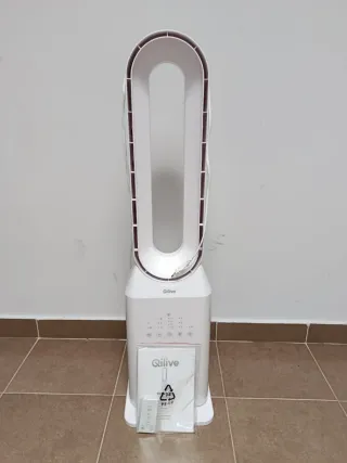 Ventilador de pie Qilive en color blanco. Incluye mando a distancia y manual de instrucciones. - Diseño moderno y elegante. - Panel de control intuitivo. - Mando a distancia para mayor comodidad.