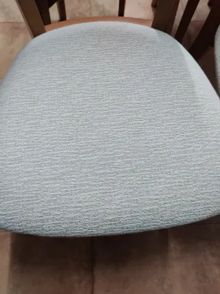 Juego de 4 sillas y una mesa de madera impoluta.