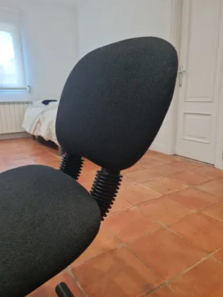Silla de oficina con un diseño moderno y confortable. - Tapicería de tela. - Base de metal y plástico. - Ruedas para fácil movilidad.
