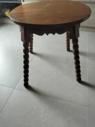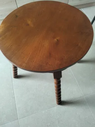 Mesa auxiliar de madera maciza con un diseño clásico y elegante. Perfecta para añadir un toque de calidez a cualquier rincón. - Patas torneadas con detalle. - Tablero redondo. - Estructura robusta.