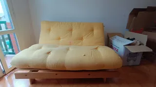 Sofá cama marca danesa Karup Roots de 140 cm El colchón tiene algunas marcas ( ver fotos) pero la estructura está en muy buenas condiciones, se tenía con una funda ya que se ensucia mucho si no se le pone funda. Vendo por mudanza. Pesos y medidas • Modo Sofá: 140 (ancho) x 105 (profundo) x 85 (alto) cm. • Altura del asiento: 47 cm. / Fondo del asiento: 63 cm. • Futón: 140 (ancho) x 200 (largo) x 12 (grueso) cm. • Grosor del futón: 12 cm. • Peso máximo: 250 kg. • Peso: 33 kg.