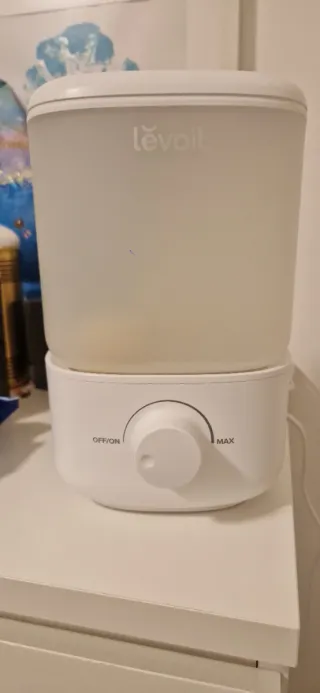 Humidificador Levoit en color blanco y gris. Su diseño moderno se adapta a cualquier espacio. - Depósito translúcido. - Panel de control intuitivo. Usado solamente durante 4 meses por condicion respiratoria de un bebé. Como NUEVO!!! Viene con caja original y todos sus accesorios. Comprado en Amazon! Precio ref. nuevo 69€