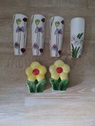Conjunto de humidificadores de cerámica para radiador con diseños florales. - Diseños variados de flores. - Material: Cerámica. - Incluye ganchos para colgar en el radiador. Precio unitario