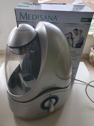 Humidificador MEDISANA, silencioso, nebulización microfina. Potencia de nebulización máx 300ml/h. Para habitación hasta 30m2. Muy poco uso.